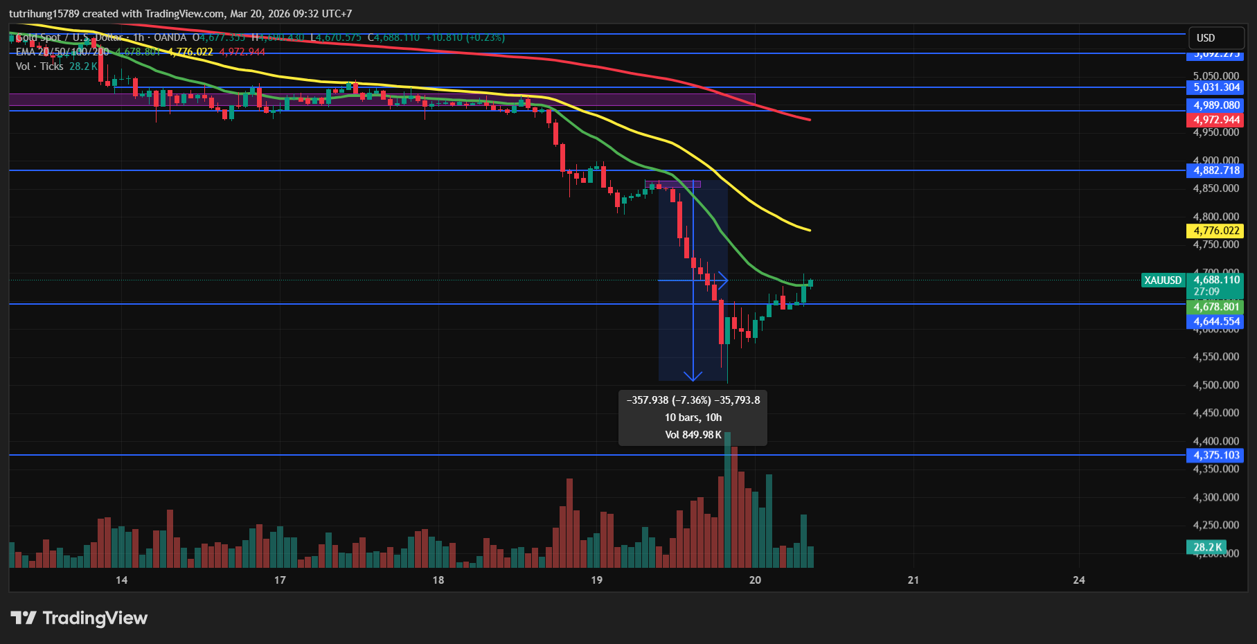 Hôm qua, thị trường tiếp tục chứng kiến cú đè bán cực mạnh của Vàng khiến Vàng giảm hơn 360 giá về vùng 4500$/ounce chỉ trong 1 ngày và giá Dầu tiếp tục chạm mốc 100$/thùng.