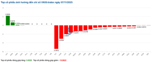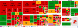 Các mã cổ phiếu trong rổ VN30 gặp phải áp lực bán mạnh đã lấy đi hơn 19.86 điểm từ chỉ số chung. Nổi bật với VIC, VHM, VJC và STB với mức tác động giảm lần lượt là 5.36 điểm, 3.07 điểm, 2 điểm và 1.63 điểm. Theo sau là những mã như MWG, VRE, HDB… cũng ghi nhận sự sụt giảm đáng kể. Chỉ còn lại một số ít các mã giữ được sắc xanh như FPT, MSN, VNM nhưng mức tác động không quá đáng kể.